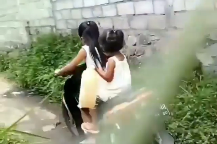 Bahkan bocah yang mengendarai motor terlihat kakinya belum menapak.
