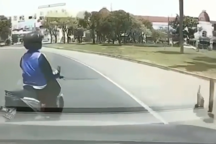 Pada video awalnya terlihat seorang pengendara Honda BeAT itu berada di tengah jalan.