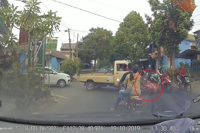 Gridmotor.id - Diduga kurang konsentrasi, pengemudi mobil pikap menabrak pemotor sampai jatuh.