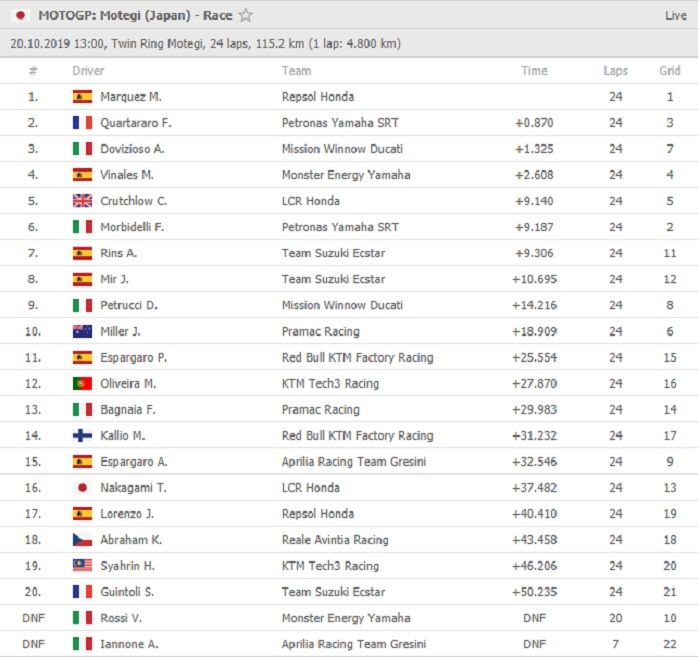 Berikut hasil balap MotoGP Jepang 2019:
