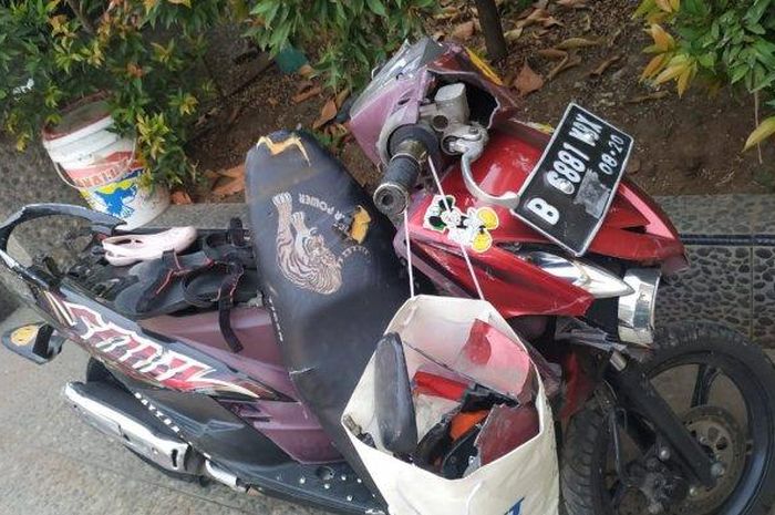 Gridmotor.id - Sepasang suami istri yang menggunakan Yamaha Mio Soul terserempet KRL di perlintasan kereta api.