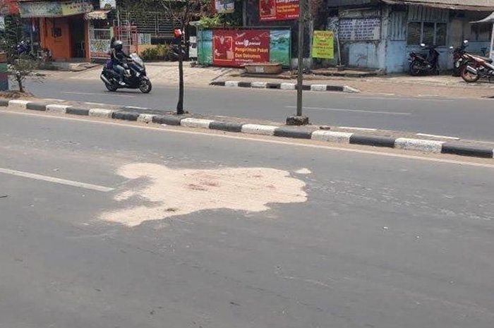 Cepatnya kejadian membuat sopir truk pengangkut tanah yang melaju di belakang tak sempat mengerem lalu melindas tubuh pengendara Vario.