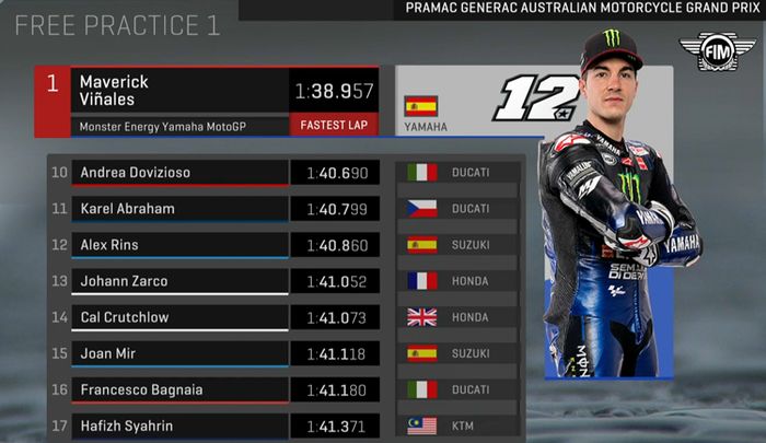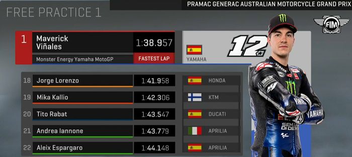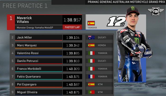 Sekaligus menjadikan tim Yamaha pabrikan berkuasa di 4 besar FP1 MotoGP Australia 2019.
