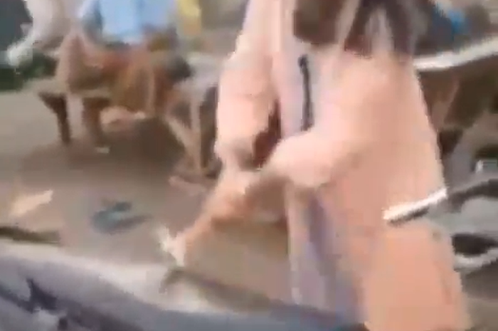 Pada video terlihat seorang wanita yang sedang merusak sebuah Honda BeAT berwarna hitam.