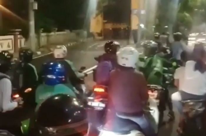 Bahkan puluhan pemotor dan pengemudi mobil sempat berhenti karena takut terkena lemparan batu.