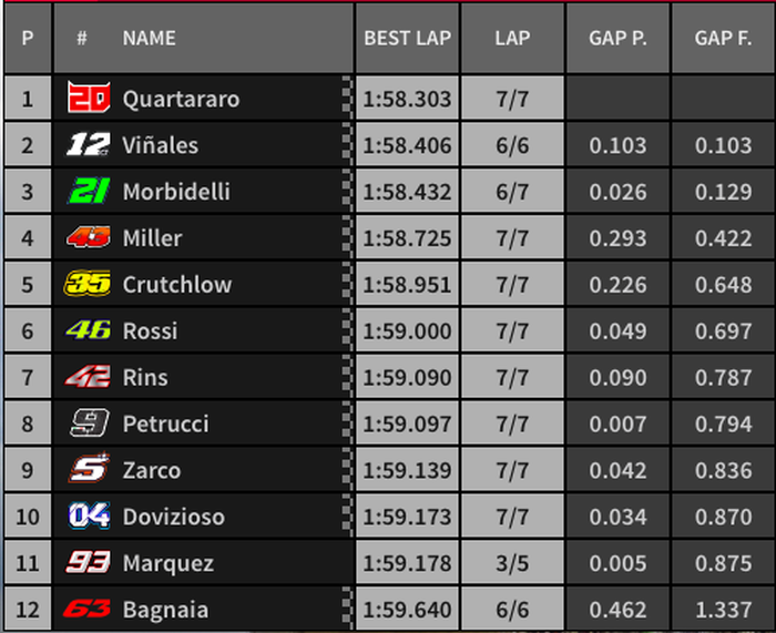 Simak hasil lengkap kualifikasi MotoGP Malaysia 2019 di bawah :