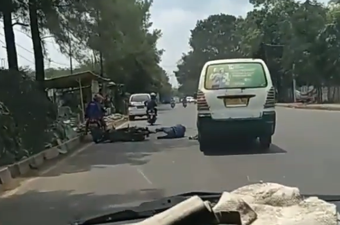Boncenger yang terjatuh pun terlempar hingga ke tengah jalan.