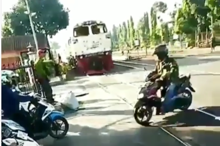 Gridmotor.id - Nyawa driver ojek online (ojol) dan penumpangnya hampir melayang akibat motornya terserempet kereta api.