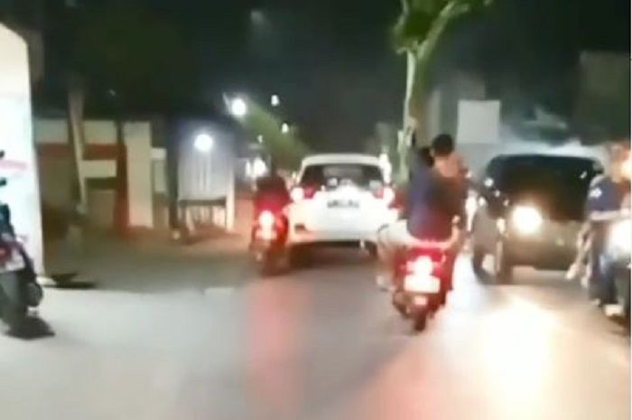 Tapi, ada juga pemotor berboncengan dengan membawa 'barang' yang bikin geleng-geleng.