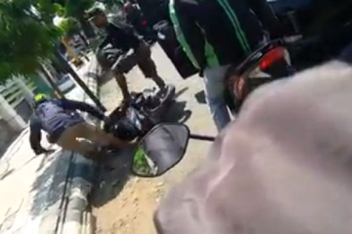 Dari video itu, nampak sebuah motor tergeletak di pinggir jalan.