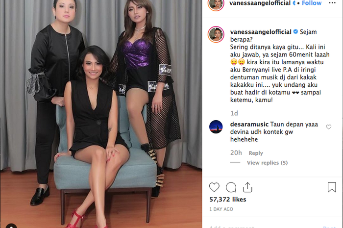 Terungkap dalam akun media sosial Instagram Vanessa Angel jawaban dari pertanyaan 'Sejam berapa?'