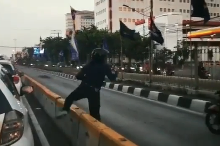 Sebuah video yang menunjukkan penjambret beraksi di tengah kemacetan viral di media sosial.