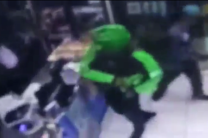 Pada video terlihat salah seorang pelaku menggunakan jaket ojek online (ojol).