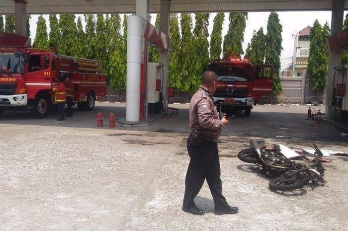 Gridmotor.id - Sebuah motor Suzuki Thunder 125 hangus terbakar di SPBU sesaat setelah isi bensin.