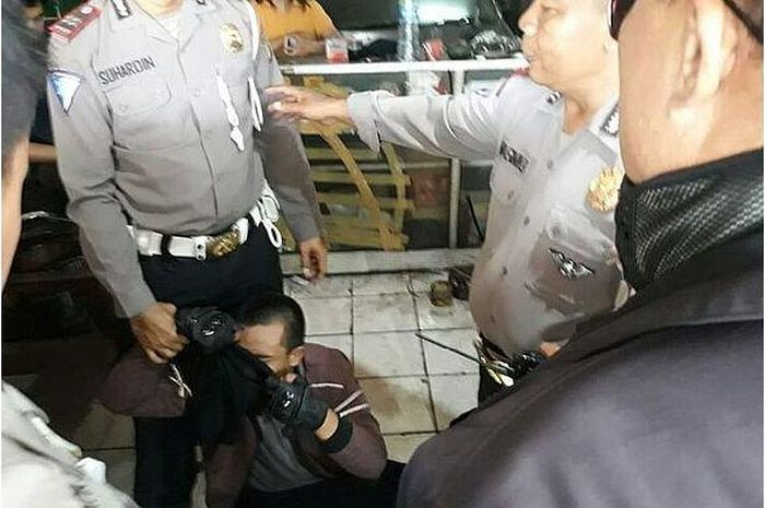 "Ternyata setelah di polsek info awal usianya masih 13 tahun tapi sudah menggunakan sepeda motor Kawasaki KLX warna hitam bertuliskan police.