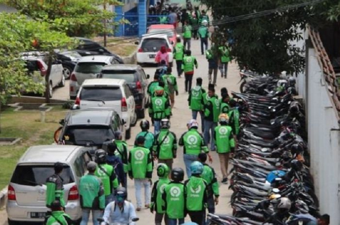 Maksud kedatangan para pengemudi ojol ini bukan untuk membesuk rekannya yang sedang sakit ataupun untuk melakukan aksi demo.