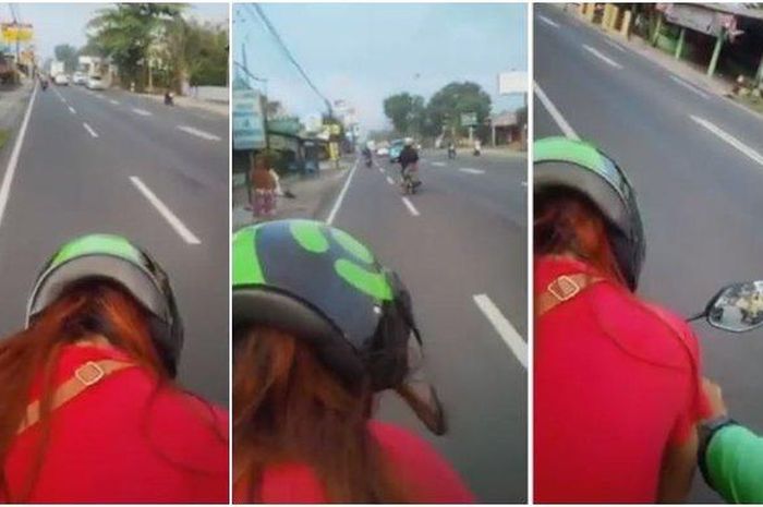 Dengan tenang, driver ojek online itu pun tetap mengendarai motornya seperti biasa.