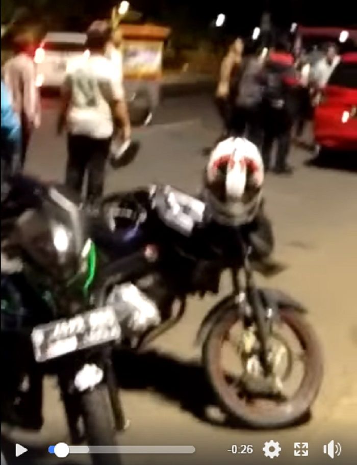 "Lu orang mana? Ayo lu orang mana sekarang. Lu ngapai minta-mintai di sini, ini wilayah gua," ujar bikers dengan nada keras.