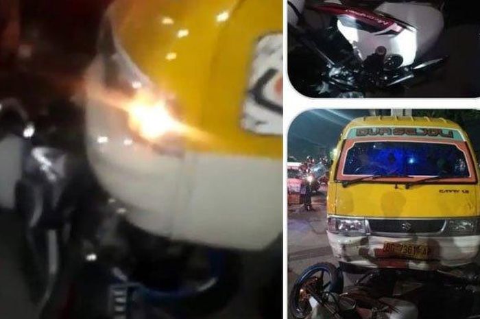 Gridmotor.id - Sebuah angkot ngebut dan ugal-ugalan hingga tabrak 3 motor di jembatan Ampera, Palembang, Sumatera Selatan, Kamis (21/11/2019) pukul 21.45.