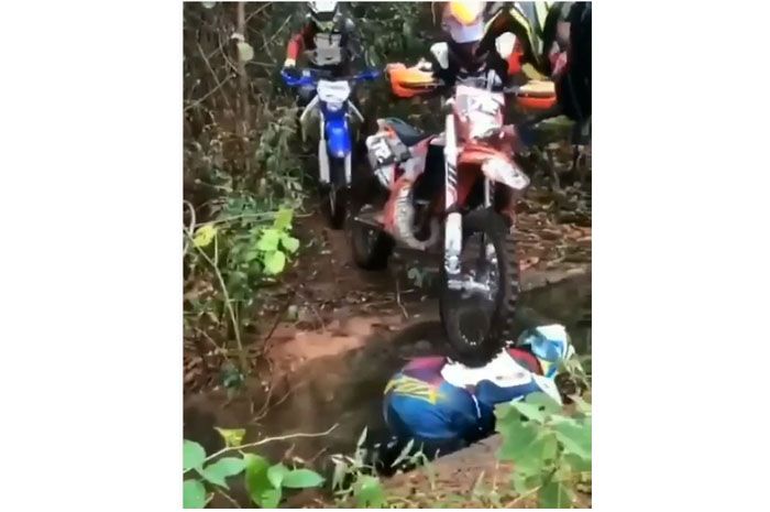 Enggak terhitung jatuh bangun yang dilakukan oleh joki motor trail.