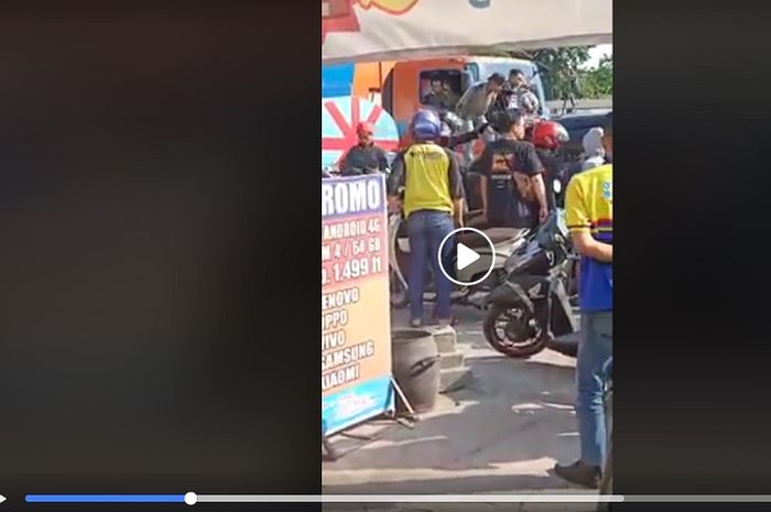 Warga dan pemotor nampak emosi dan langsung mengepung mobil.
