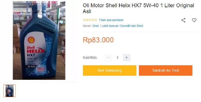 Satu botol oli motor Shell Helix HX7 5W-40 1 Liter dibanderol Rp 83 ribuan.