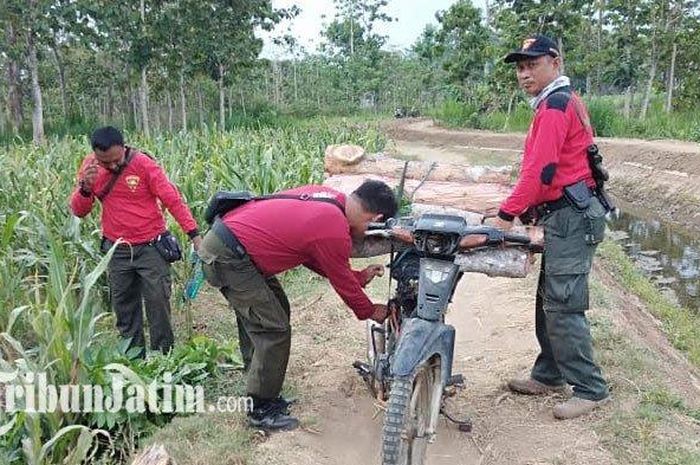 Akibatnya, pencuri kayu yang meninggalkan sepeda motor bututnya itu berhasil meloloskan.