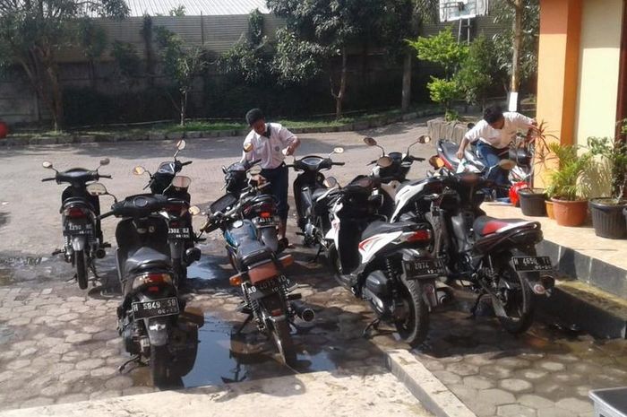 Siswa-siswa yang izin tidak mengikuti upacara langsung mencuci motor dan mobil milik para guru.
