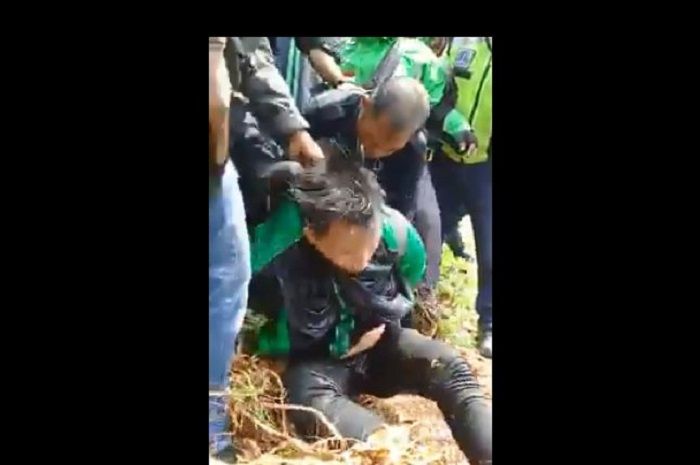 Lelaki yang menggunakan jaket ojek online menjadi bulan-bulanan warga Artha Gading, Jakarta Utara.