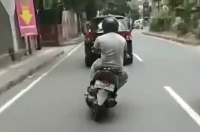 Dan setelah itu, pemotor tersebut malah mencoba wheelie di jalan raya namun gagal.