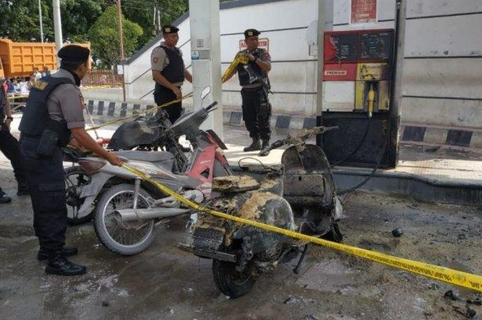 Gridmotor.id - Tiga motor dan satu mobil terbakar saat mengisi bensin di SPBU 24.341.09 jalan Jenderal Sudirman, Metro Barat, Lampung, Selasa (3/12).
