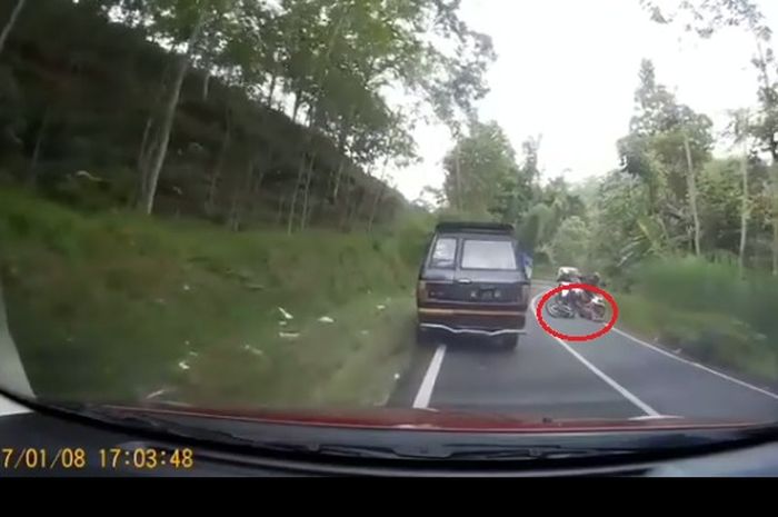 Video yang diambil dari sebuah mobil, memperlkihatkan detik-detik kecelakaan motor.