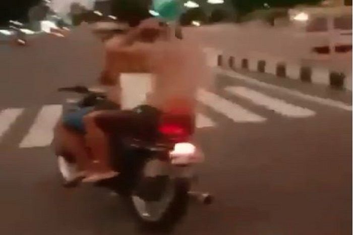 Aksi mandi sambil naik motor dilakukan oleh dua remaja yang diduga terjadi di alun-alun Purworejo, Jawa Tengah.