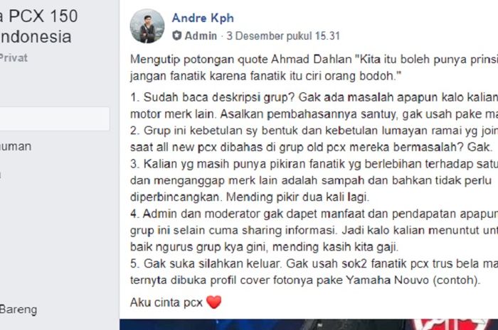 Beberapa kali postingan Yamaha NMAX terbaru nongol di wall Facebook grup Honda PCX 150.