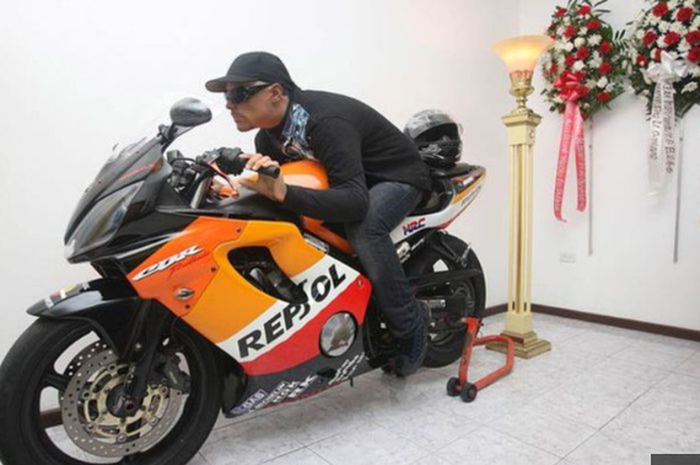 Mirip seperti Billy Standley, David Morales juga dibalsem sedang duduk di atas moge Honda CBR600 F4i yang disayanginya.