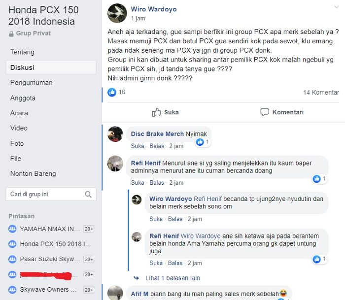 Selain itu, grup dijadikan sebagai sarana menambah pengetahuan dan saling berbagi informasi yang bermanfaat, bukan malah saling menjatuhkan antar merek motor satu dengan merek lainnya.