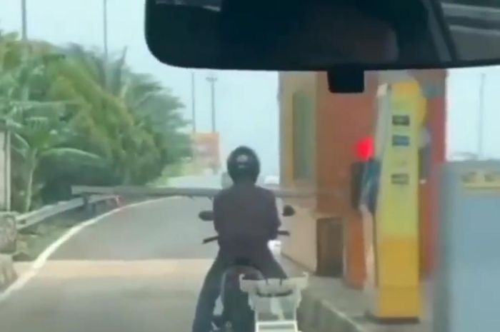 Viral sebuah video yang memperlihatkan seorang mas-mas pengendara Honda BeAT mencoba masuk jalan tol.