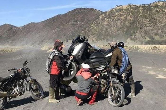 GridMotor.id - Kembali terciduk motor mogok di wilayah Gunung Bromo, Jawa Timur yang diangkut Honda GL Pro tua