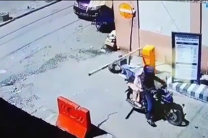 Gridmotor.id - Seorang boncenger motor dihajar palang pintu otomatis sampai terjungkal.