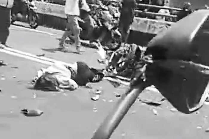 Pelaku tabrakan maut itu diduga seorang pengendara motor gede yang melajut terlalu kencang.