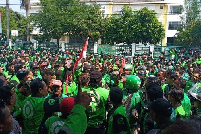 Aksi demonstrasi itu melibatkan beberapa driver ojol yang berasal dari Gojek dan Grab.