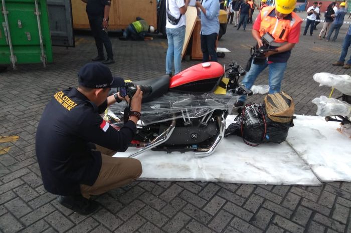 "Terlihat di depan itu sebagian dari contoh-contoh motor yang diselendupkan menggunakan kontainer masuk melalui Tanjung Priok.