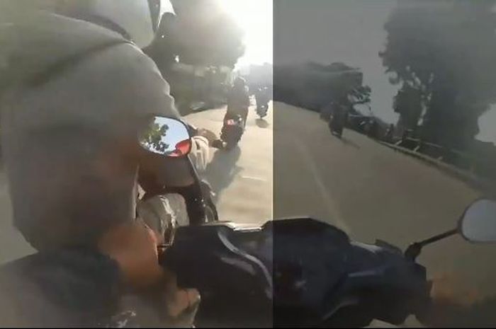 Bukannya sadar, pengendara motor matic itu justru makin beringas ketika ada pemotor lain yang berusaha menyalipnya.