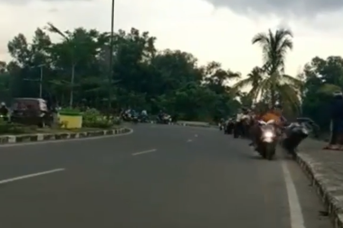 Pada video tampak beberapa pengendara motor sedang ngebut di jalan raya.