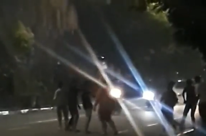 Tidak diketahui apa maksud gerombolan tersebut berdiri di tengah jalan.