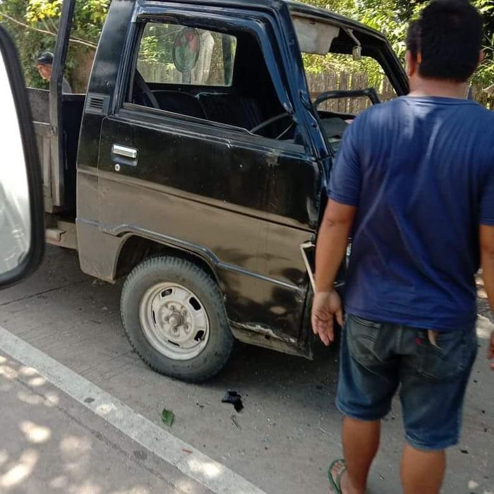 Pada foto lain, terlihat juga mobil pikap L300 ringsek di bagian depan, hingga kaca depan hancur.
