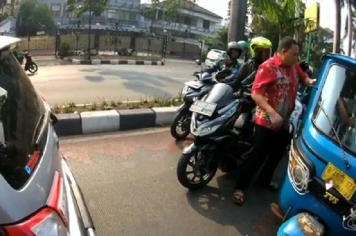 Dikutip GridMotor dari video yang diunggah akun Instagram @kacamata_jalanan, seorang lelaki berbatik merah nampak melayangkan pukulan ke sopir bajaj.