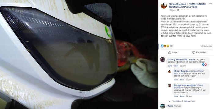 Brian mengaku bingung cara mengeluarkan air yang mengendap di lampu depan Yamaha NMAX miliknya.
