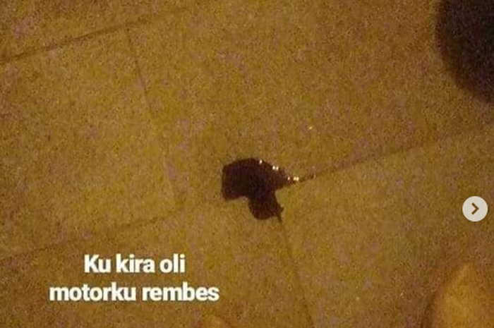 Pada unggahan tersebut, seorang pengendara motor mengira oli motornya rembes.