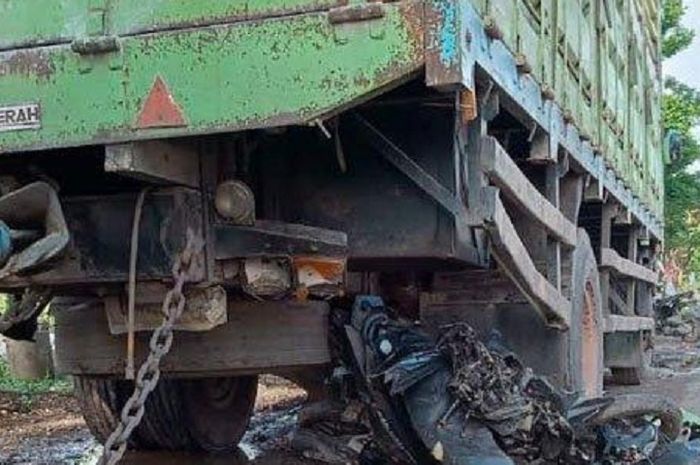 Sialnya, motor terlempar ke arah truk gandeng yang sedang parkir di jalan nasional Lamongan - Babat, tepat di Desa Plosowahyu Lamongan, Sabtu (28/12/2019).
